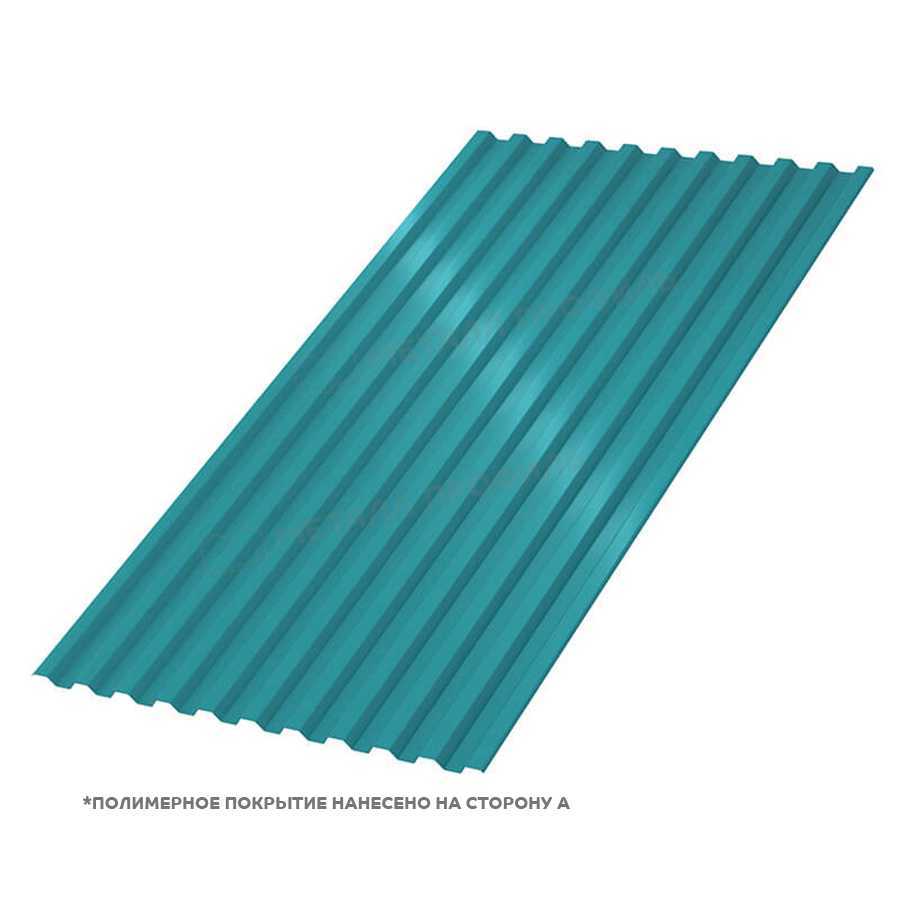 Профлист Металл Профиль С-21 толщиной 0,45 мм с покрытием Полиэстер в оттенке RAL 5021 "Синяя вода" представляет собой универсальный строительный материал. Он сочетает прочность металла с эстетичным внешним видом, подходя для кровельных работ, возведения заборов и фасадных конструкций. Этот профлист устойчив к атмосферным воздействиям и обеспечивает долговечность сооружений.